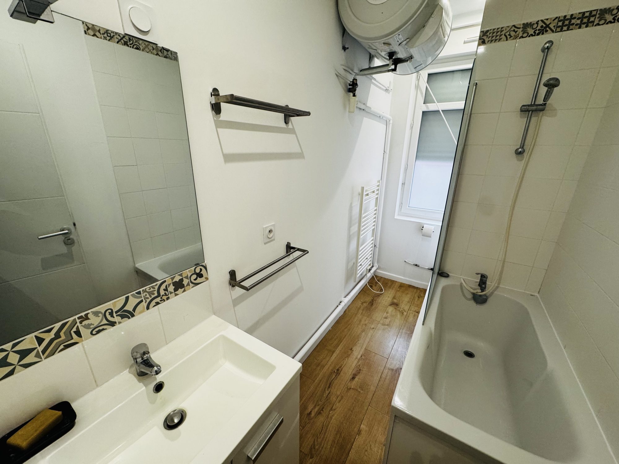 Situé au 1er étage d’un petit immeuble de 2 logements, l’appartement offre une belle pièce de vie parquetée, une chambre lumineuse côté jardin, au calme, et une salle de bain avec baignoire.