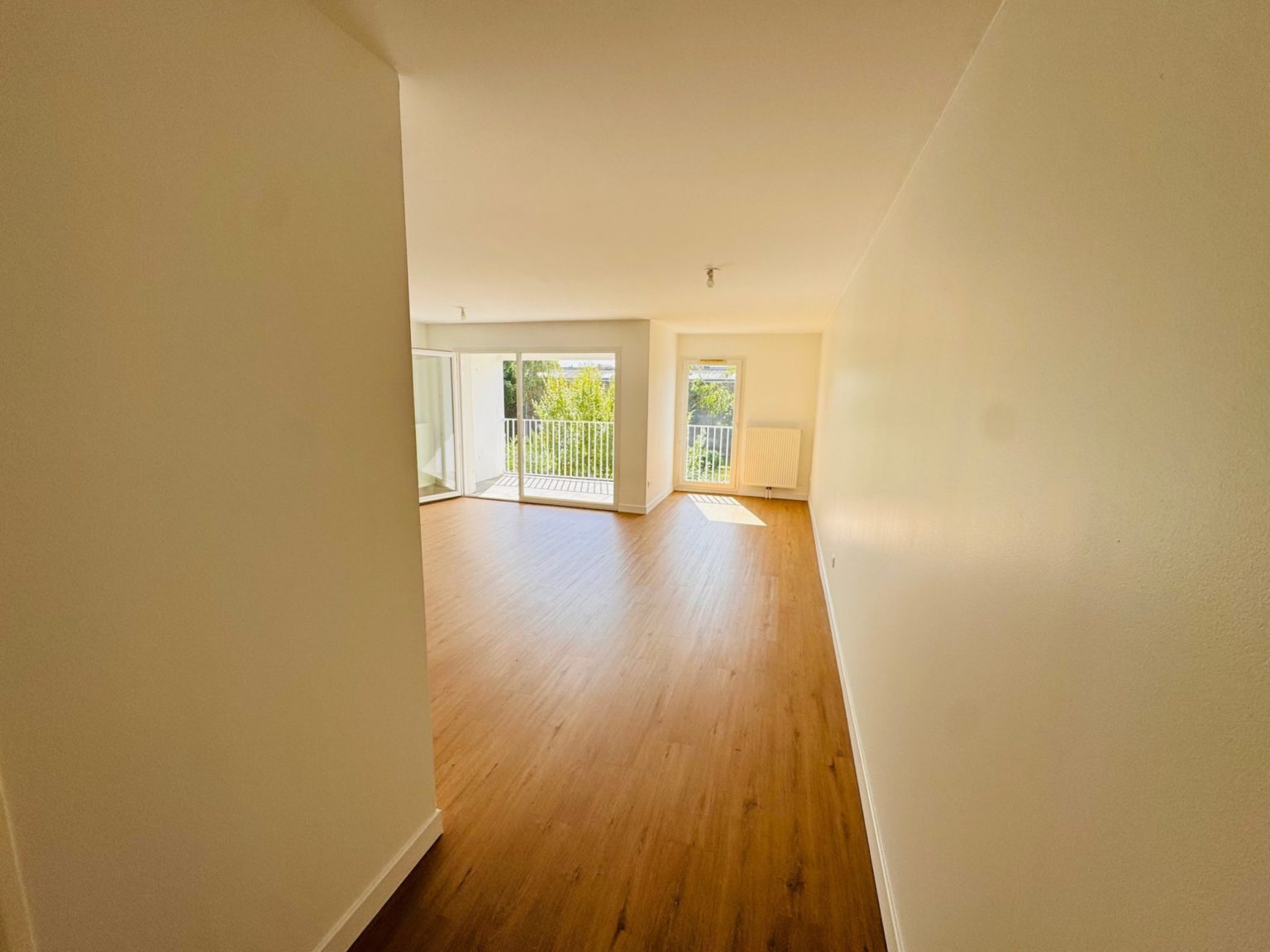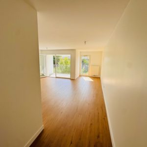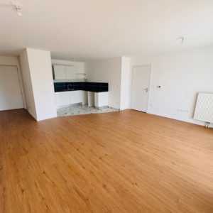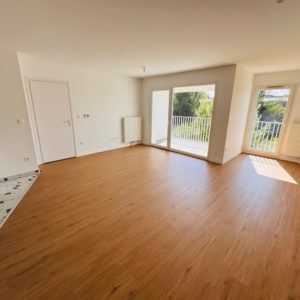 Cet appartement de type 4 comprend une entrée, un séjour avec cuisine ouverte donnant sur un balcon, une salle de bain et WC séparé, 3 chambres dont une avec une salle d’eau.